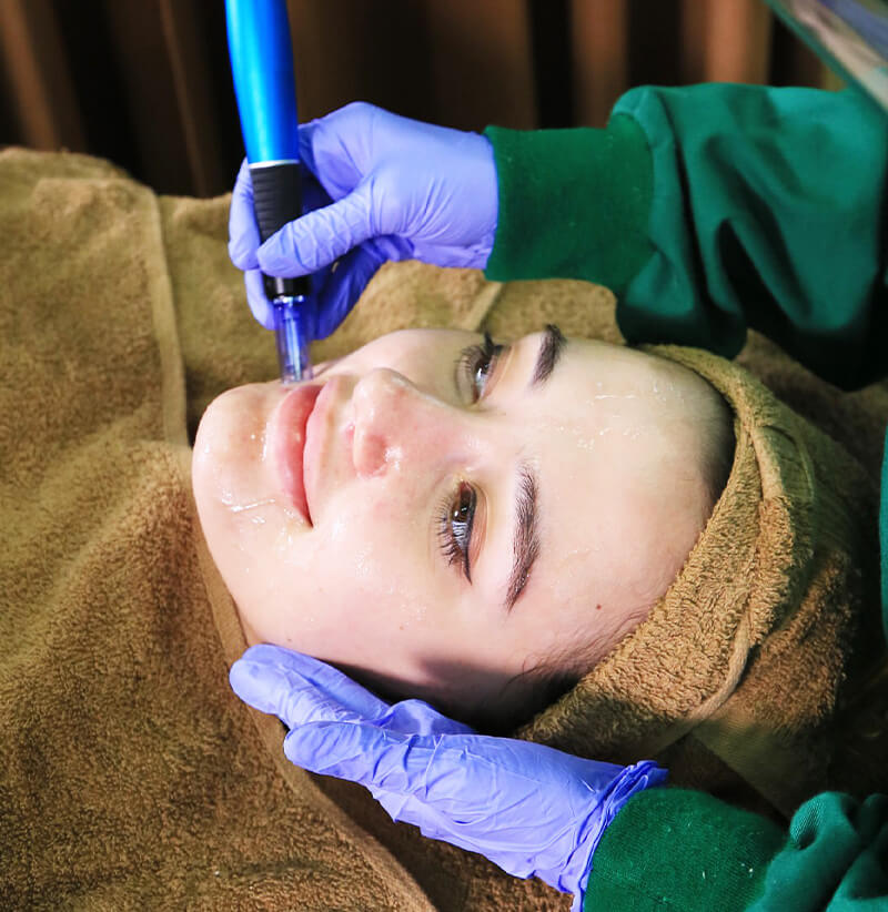 Microdermabrasi memiliki manfaat mengangkat lapisan sel kulit mati dan menstumulasi pertumbuhan sel baru dan collagen serta untuk pengelupasan kulit yang cepat untuk menghilangkan bekas-bekas jerawat.