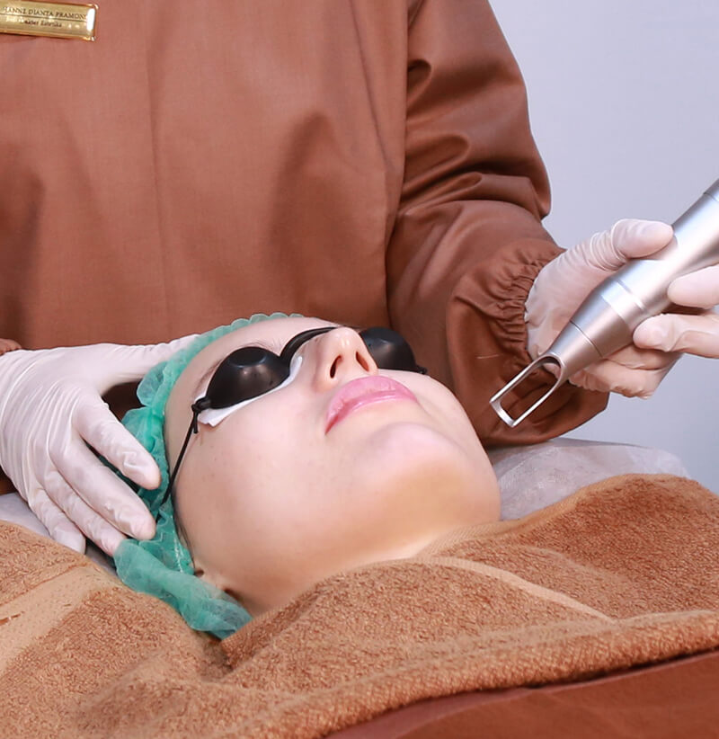 Step 1 : Laser NdYAG dilakukan secara detail di area yang memiliki flek, melasma atau masalah kulit lainnya